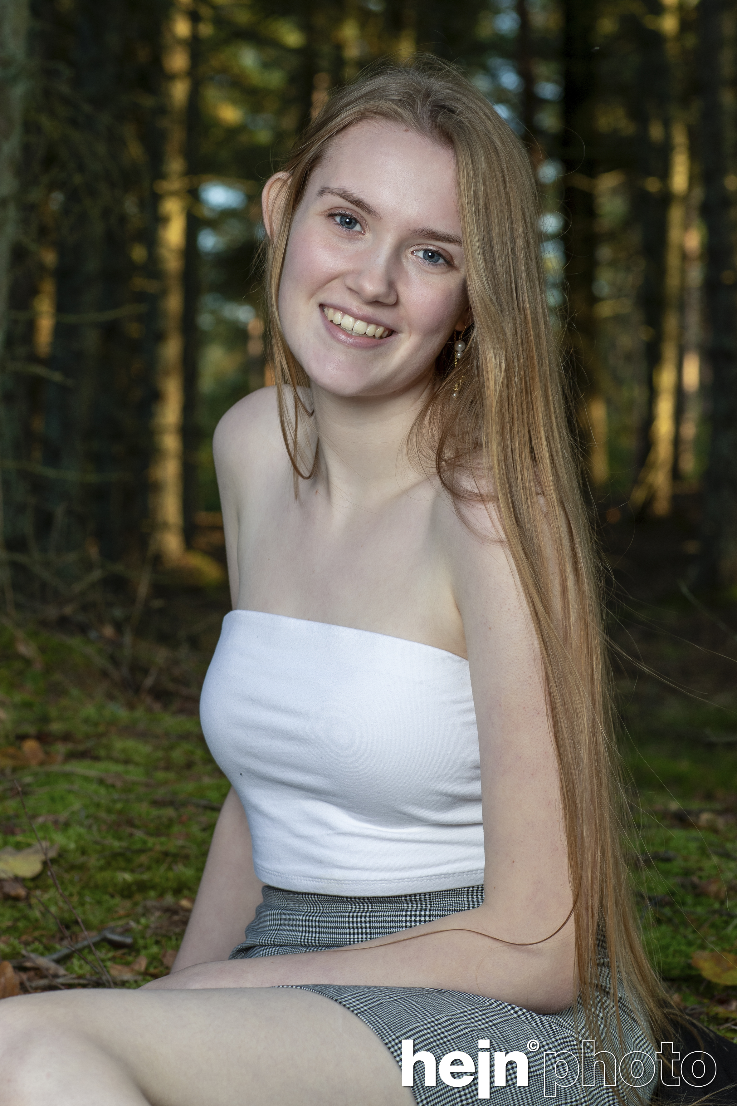 The scene captures the peaceful yet enchanting atmosphere of nature, with the model gracefully interacting with the leaves as they drift around her, evoking a sense of tranquility and the fleeting beauty of the season.